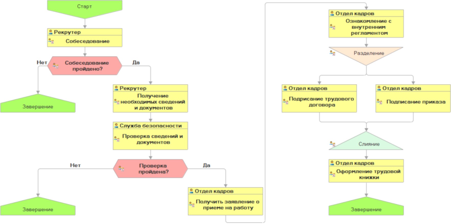 Бизнес-процессы – поочередная цепочка действий, объединенных общей целью. Примером может быть трудоустройство сотрудников, работа с претензиями клиентов, заключение сделки, формирование заказов.
