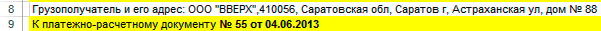Полное или сокращенное наименование, адрес, в соответствии с учредительными документами. Если товар отгружается в адрес ОП клиента, то в данной строке проставляется адрес этого ОП.