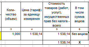 При отсутствии показателя вносится запись «без акциза». При получении оплаты или частичной оплаты в счет предстоящих поставок ставится прочерк.