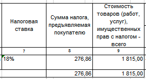 Сумма НДС рассчитывается как стоимость без налога (графа 5), умноженная на ставку (графа 7) по соответствующей строке. При реализации товаров (работ, услуг), освобожденных от НДС, в графе 8 указывается «без НДС».